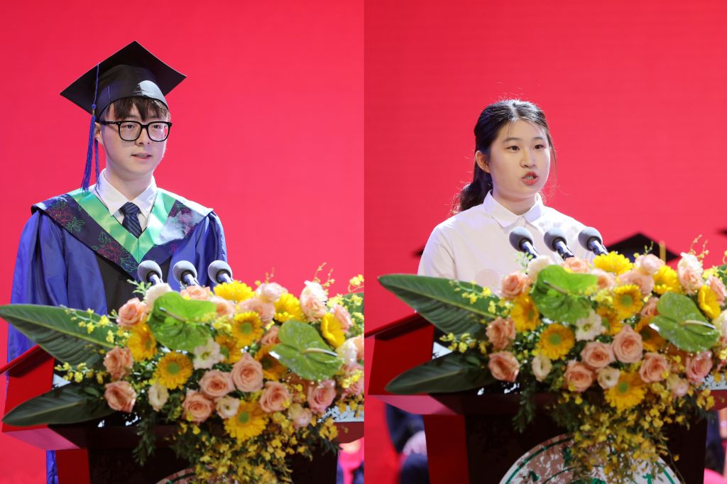 畢業生代表王皓宇,在校生代表張馨方,教師代表雷洪教授,畢業生家長代表施利霞依次發言。
