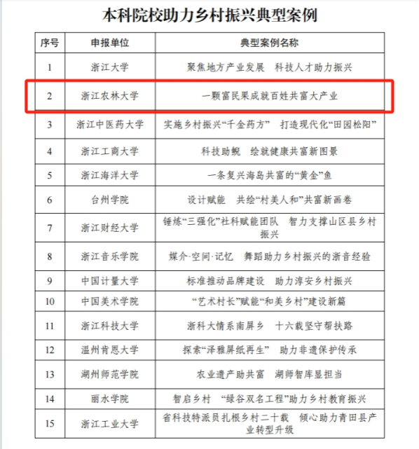 《一顆富民果成就百姓共富大產業》入選浙江省高校助力鄉村振興典型案例