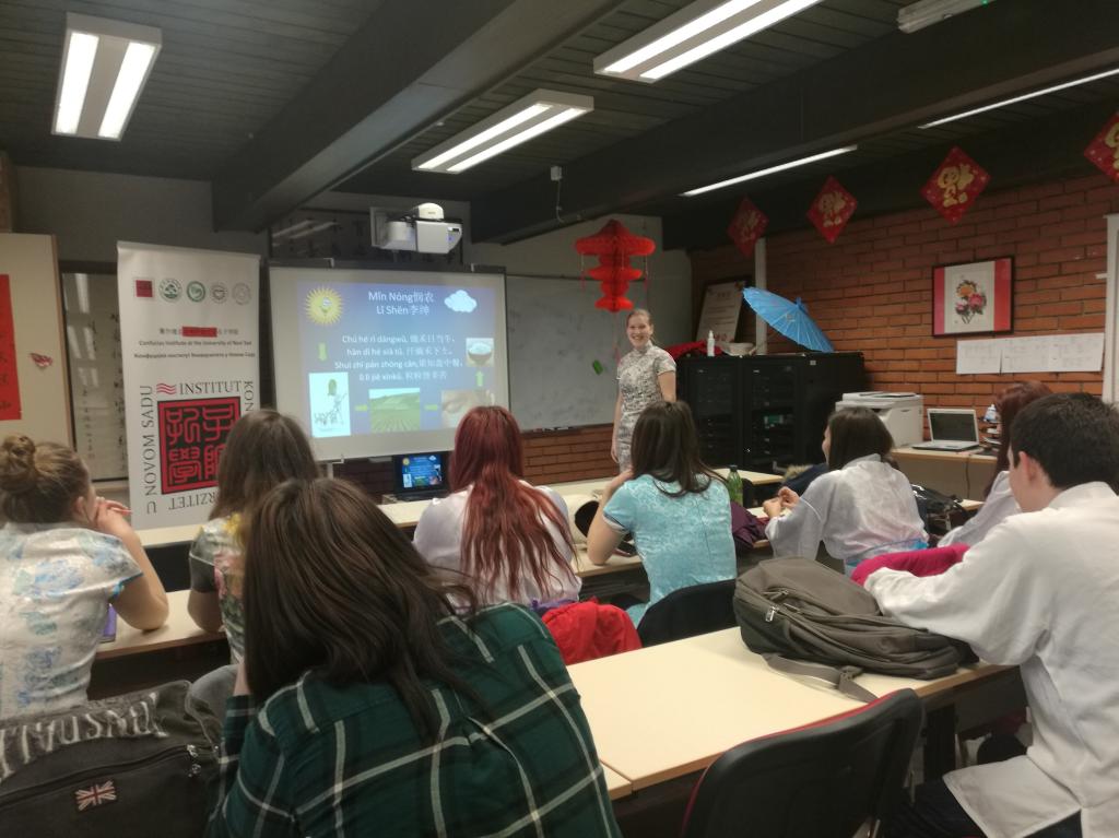 4月2日,諾維薩德大學孔子學院漢語學分班舉辦“誦古詩、學漢語”中華古詩詞朗誦會。從古詩詞選擇、到分班級進行初選,本次活動最終確定13名學生為大家誦讀中華古詩詞、分享對古詩意境的體會以及對詩人生平的了解。