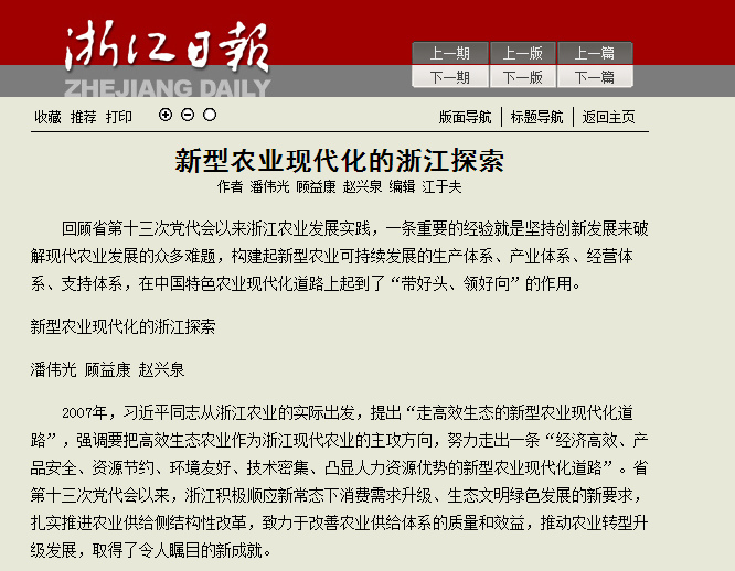 5月11日,《浙江日報》以大篇幅刊登我校中國農民發展研究中心理論文章《新型農業現代化的浙江探索》。