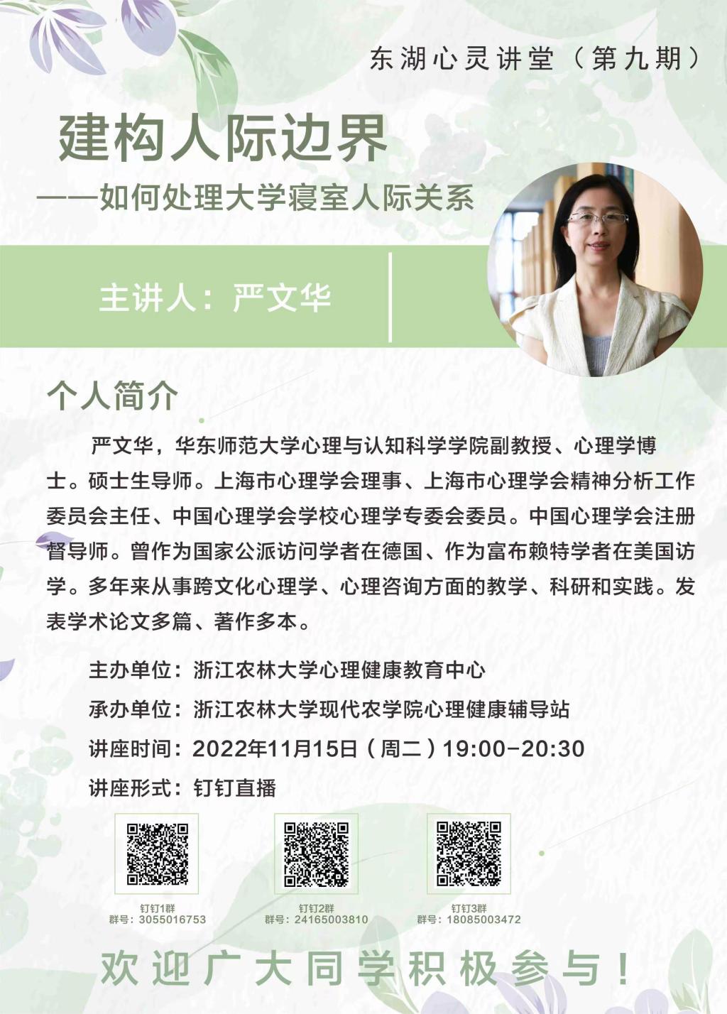 講座預(yù)告:建構(gòu)人際邊界——如何處理大學(xué)寢室人際關(guān)系