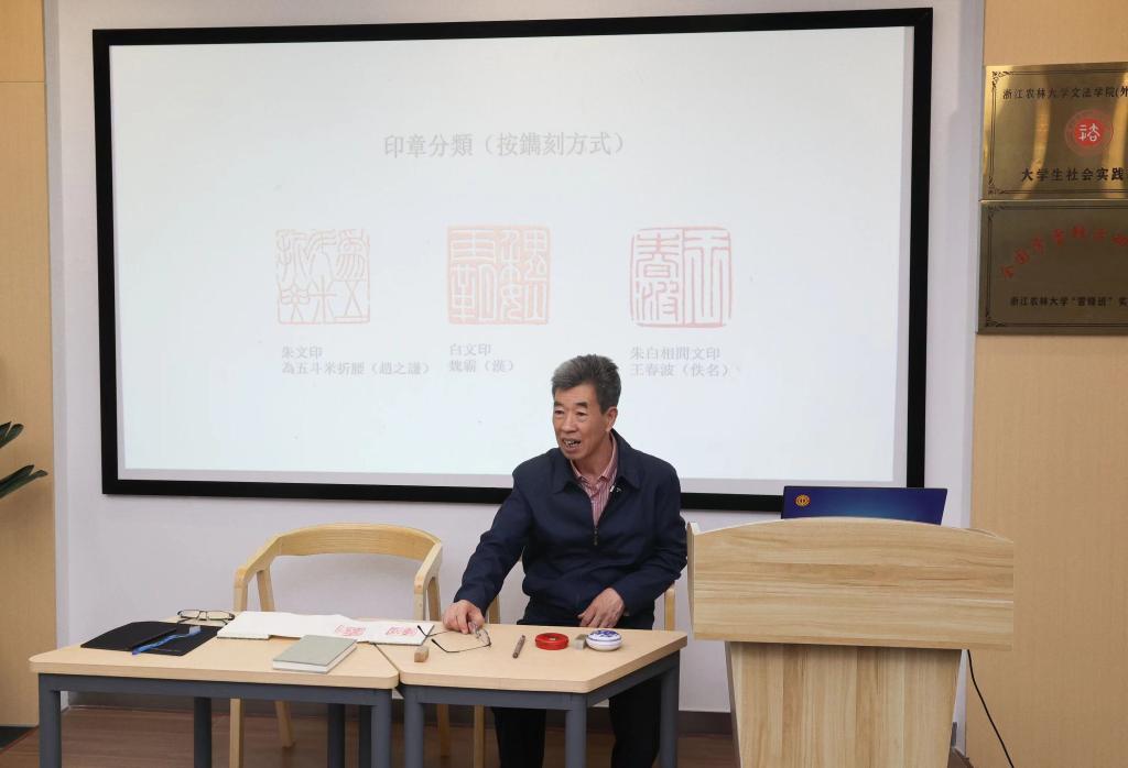 課上,中國工藝美術大師、浙江工匠錢高潮,浙江工匠錢友杰耐心細致地講解了篆刻的歷史淵源、印章的篆刻類型以及基本刀法,讓同學們對篆刻藝術有了一定的認識。在工匠們的悉心指導下,同學們紛紛拿起刻刀,刻制出了屬于自己的印章。活動結束時,同學們意猶未盡,紛紛表示將繼續(xù)參加這樣有意義的活動,為傳統(tǒng)文化的傳承和發(fā)展貢獻自己的力量。