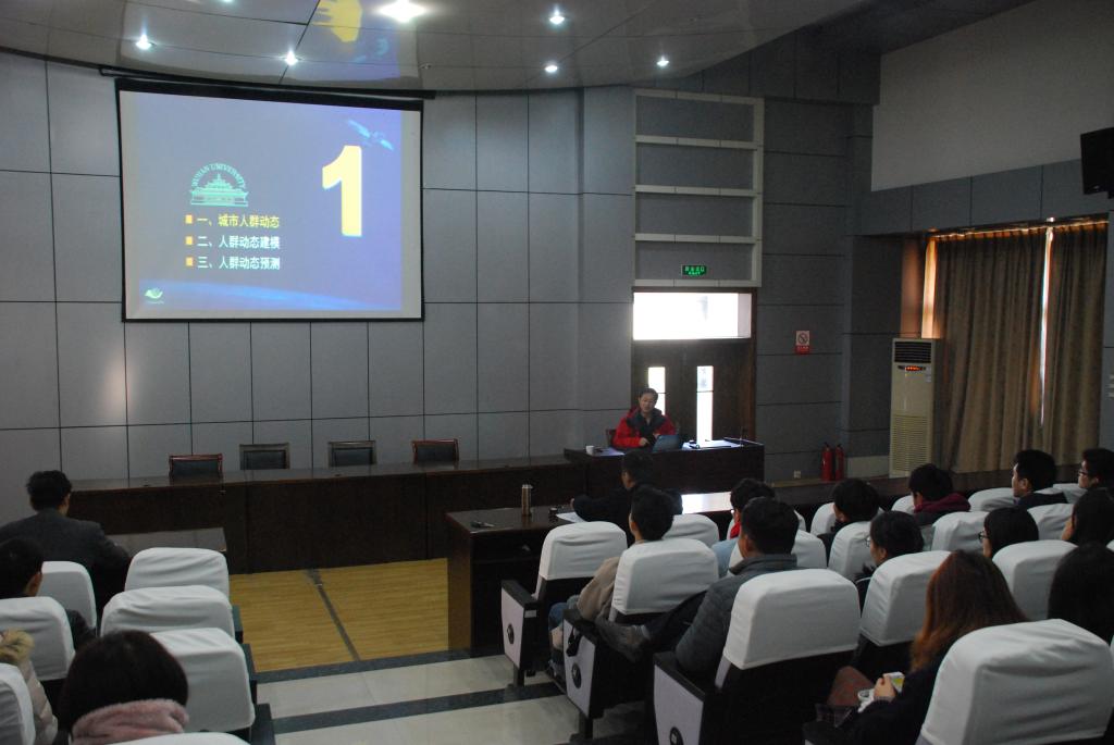 方志祥教授從城市人群動態、人群動態建模和人群動態預測三個部分,介紹了如何通過龐大的人群動態、時空變化等數據來解釋過去、服務現在并預測未來,指出了如何從人群動態和時空群體亂中有序的數據中獲得有科研價值的數據,同時結合實際對人群動態預測在公共安全預防、衛生管理、城市空間規劃等領域的關鍵研究問題進行了說明。還將研究的社會現狀、研究過程和成果向大家進行了展示,對青年教師和研究生的科研工作有很大的啟發。