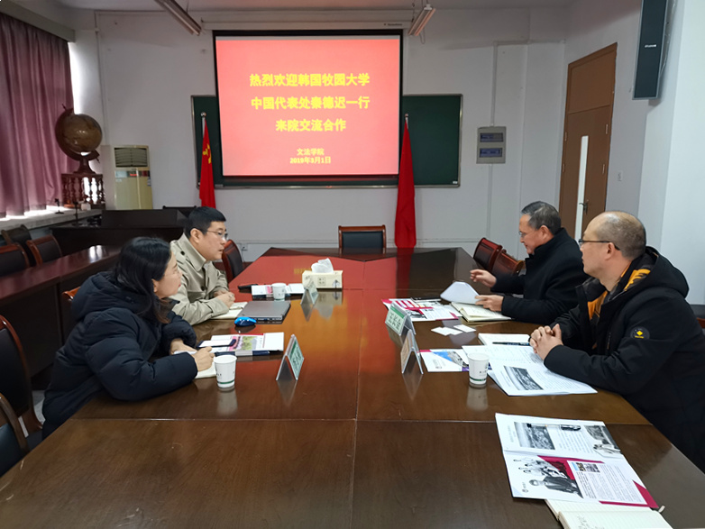 王長(zhǎng)金介紹了學(xué)校及文法學(xué)院的概況、特色以及與日本、英國等高校開展合作的基本情況。秦德遲介紹了韓國牧園大學(xué)的基本情況,并就開展碩博招生、師生互訪等合作項(xiàng)目進(jìn)行了深入洽談。