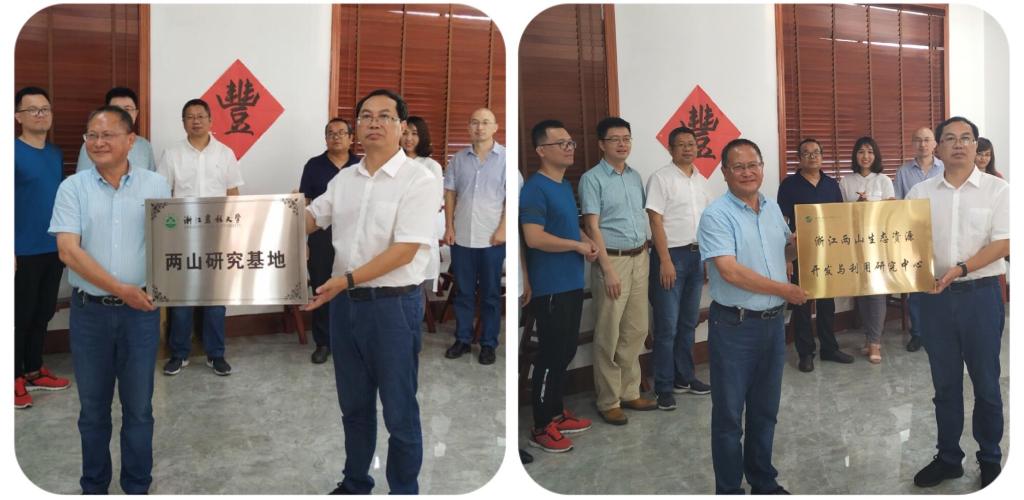 交流會上,與會人員圍繞“兩山理論”研究和大花園建設研究等具體領域進行了熱烈而深入的研討交流。雙方表示將重點圍繞兩山理論研究和生態(tài)產品價值實現(xiàn)機制等方面,共建研究基地開展持續(xù)合作研究。最后,王長金代表文法學院、劉克勤代表中國(麗水)兩山學院分別互授“浙江農林大學兩山研究基地”和“浙江兩山生態(tài)資源開發(fā)與利用研究中心”兩大研究機構牌匾。