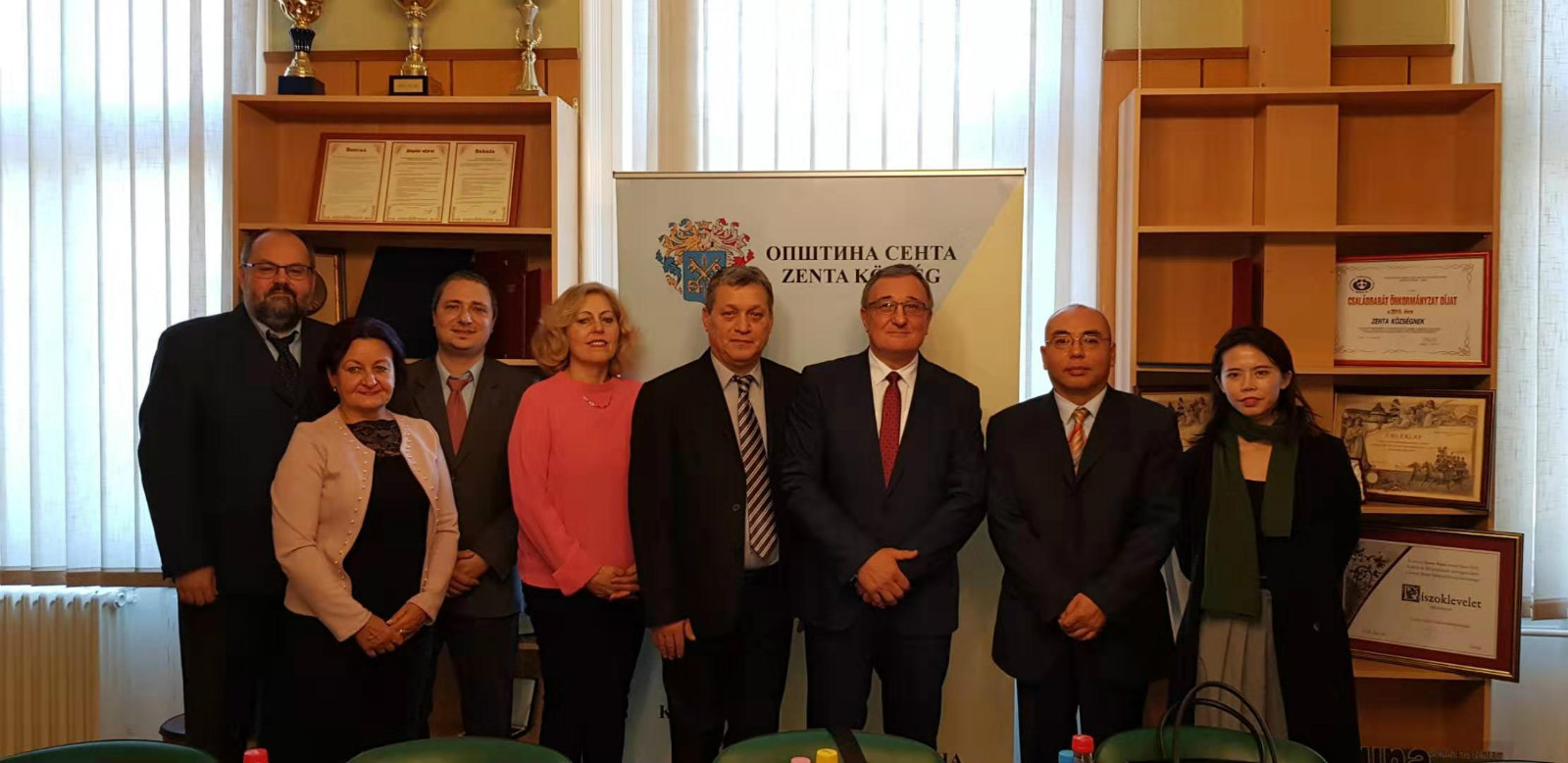 當地時間11月21日,塞爾維亞諾維薩德大學孔子學院中方院長陳晦一行訪問塞爾維亞北部城市森塔(Senta)市,在市政府會議廳與伏伊伏丁那自治省分管教育的第一副省長米哈利·尼拉斯(Mihály Nyilas)、森塔市分管教育的副議長波佩爾·阿提拉(Perpauer Attila)以及森塔市轄區內四所公辦高中的校長進行會談,商討漢語課程開設及教學點拓展等事宜。四所高中分別為醫學高中(Srednja Medicinska ?kola)、語言高中(Sen?anska Gimnazija)、經貿高中(Ekonomsko- trgovinska ?kola)和優秀數理人才高中(Gimnazija sa domom u?enika za talentovaneu?enike “Bolji”)。